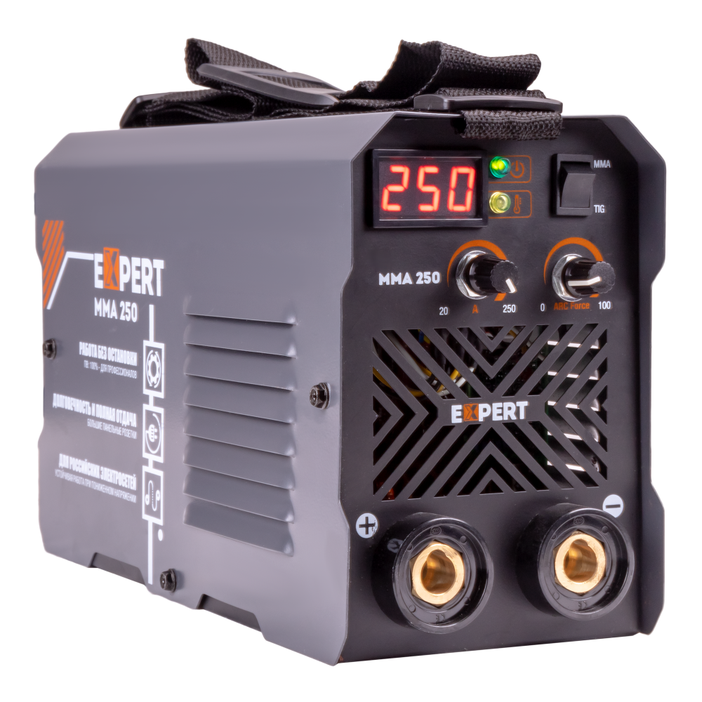 Сварочный аппарат EXPERT MMA 250 предназначен для ручной дуговой сварки электродами на постоянном токе. Аппарат выполнен по новейшей IGBT технологии, позволяющей добиться минимального веса и габаритов. EXPERT MMA 200 отличается надёжностью, хорошими техническими характеристиками, имеет встроенные функции Hot Start («Горячий старт»), регулируемую Arc Force («Форсаж дуги») и Antisticking («Антиприлипание»), которые оптимизируют и облегчают процесс сварки. Дополнительный режим TIG LIFT позволяет проводить аргонодуговую сварку на постоянном токе изделий из черной и нержавеющей стали, меди, титана, чугуна. Данный вид сварки характеризуется отсутствием брызг и более презентабельным внешним видом сварного шва. Для проведения аргонодуговой сварки необходимо дополнительно приобрести TIG горелку с вентилем.