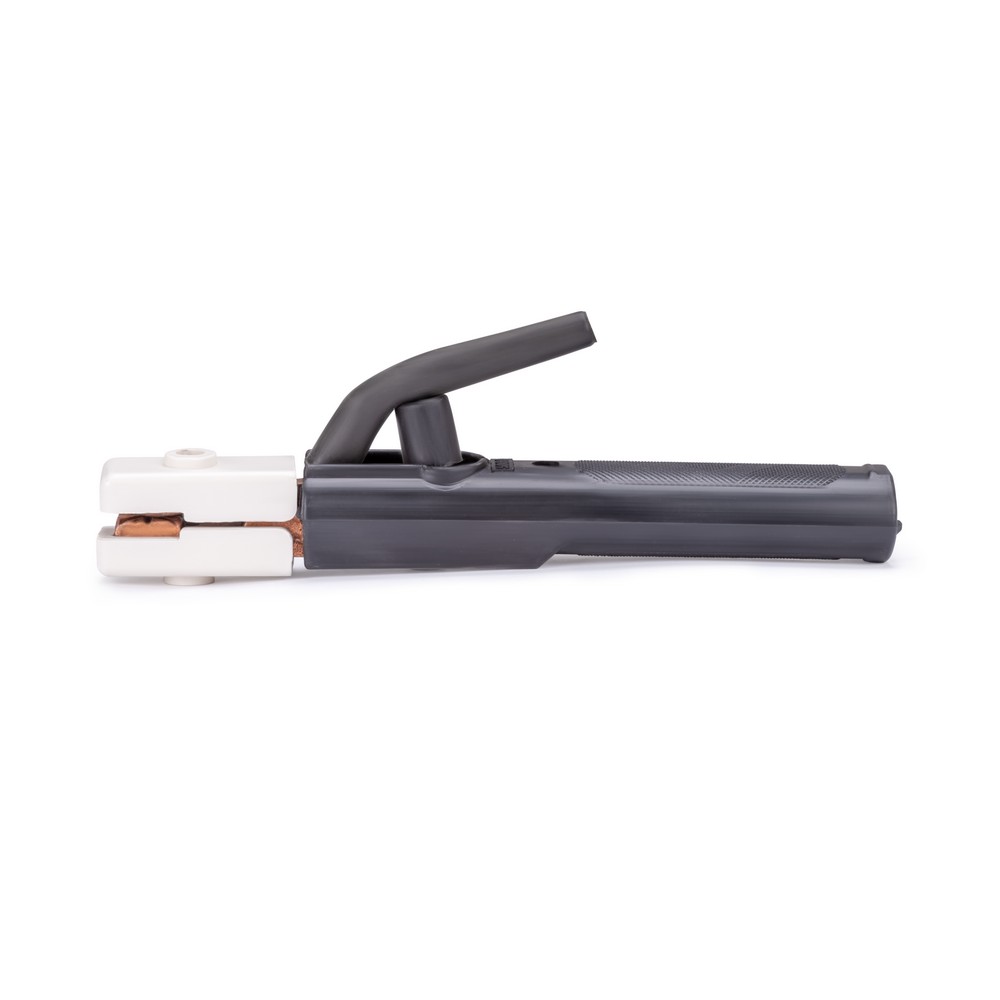 Электрододержатель Foxweld EHM-500A немецкого типа (основа зубчатых держателей прочный токопроводящий сплав). Держатель сделан из износостойких, термически стойких и прочных материалов. Область обхвата держака ладонью сварщика имеет надёжную электроизоляцию. Покрытый электрод, имеющий основное, рутиловое или целлюлозное покрытие надёжно фиксируется при помощи мощного пружинного механизма.