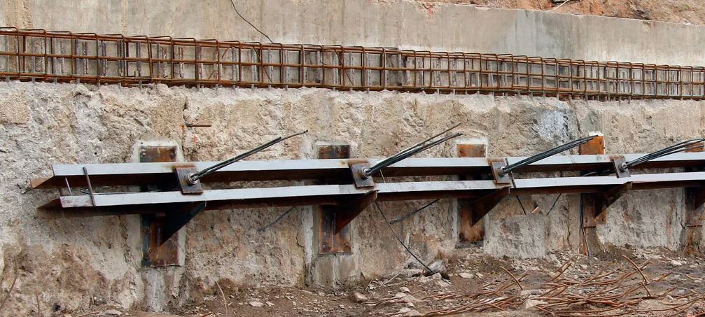 2. установка анкерной тяги (из стержней или пучков арматуры)