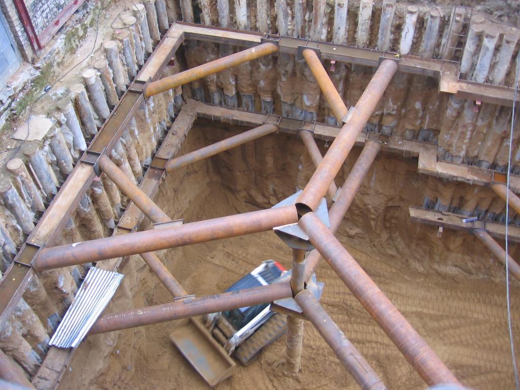 обвязочный пояс котлована, обвязка шпунта, обвязочная балка, монтаж обвязочного пояса, двутавр котлован, швеллер обвязка, крепление шпунта